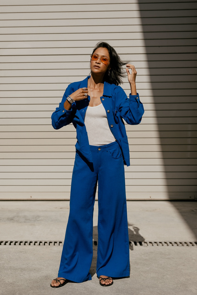 Matière noble et thermorégulatrice, le lin est l'allié des journées ensoleillées. Chez Freeman, nous travaillons cette fibre naturelle pour son tombé fluide et son aspect légèrement texturé, garantissant une élégance naturelle et une fraîcheur inégalée, même en plein cœur de l'été.